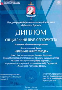 Фильм творческой группы из Миллерово «Парень из нашего города» награжден дипломом и специальным призом за высокое общественное признание.