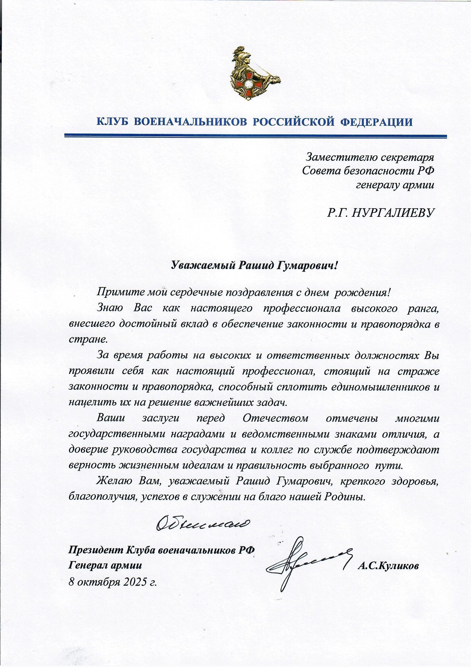 Р.Г.Нургалиеву исполнилось 69 лет ТЕМЫ:поздравления Генерал армии Нургалиев Рашид Гумарович 08.10.2025