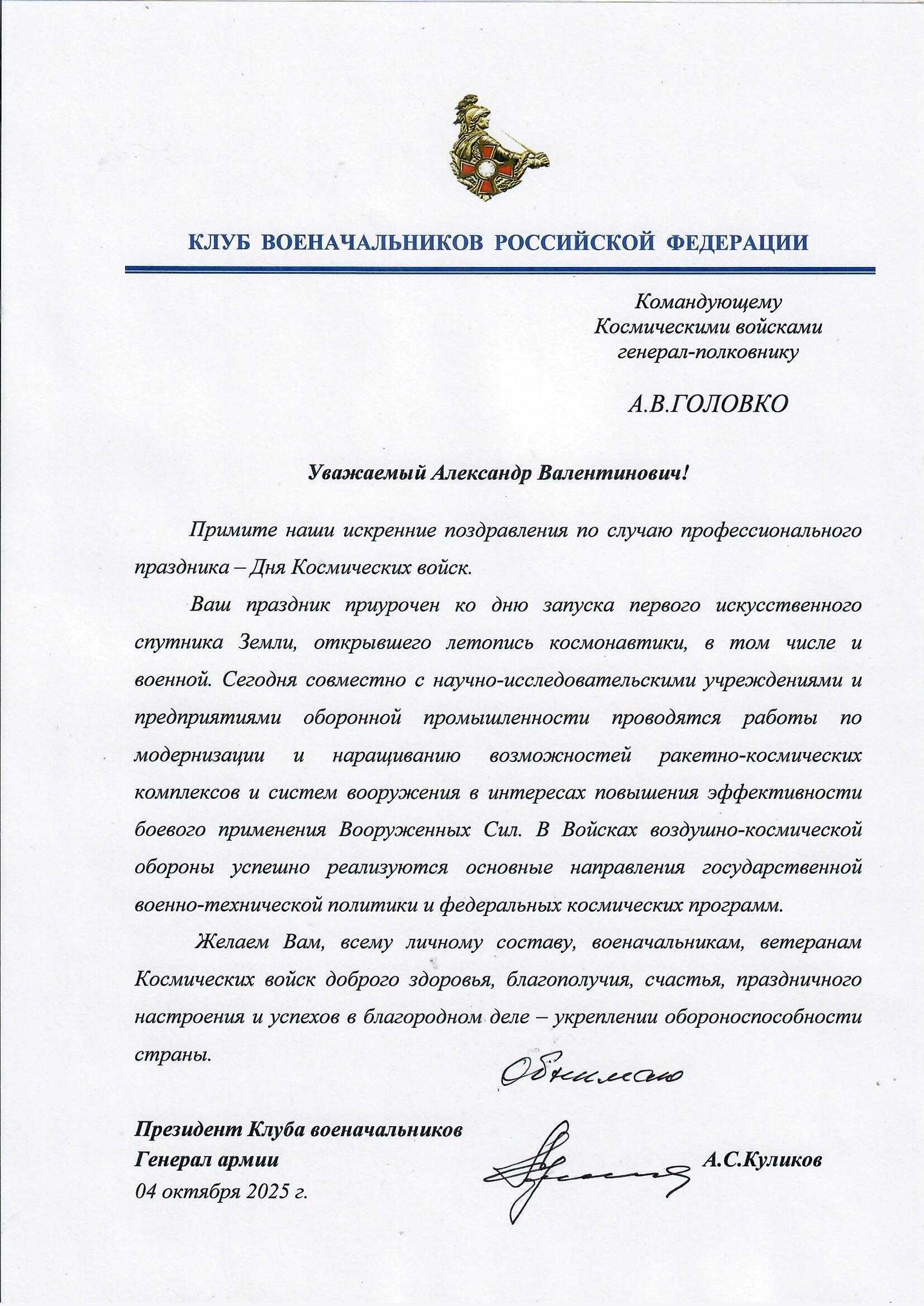 ПОЗДРАВЛЯЕМ Поздравление Президента Клуба военачальников РФ генерала армии А.С.Куликова с Днём Победы
